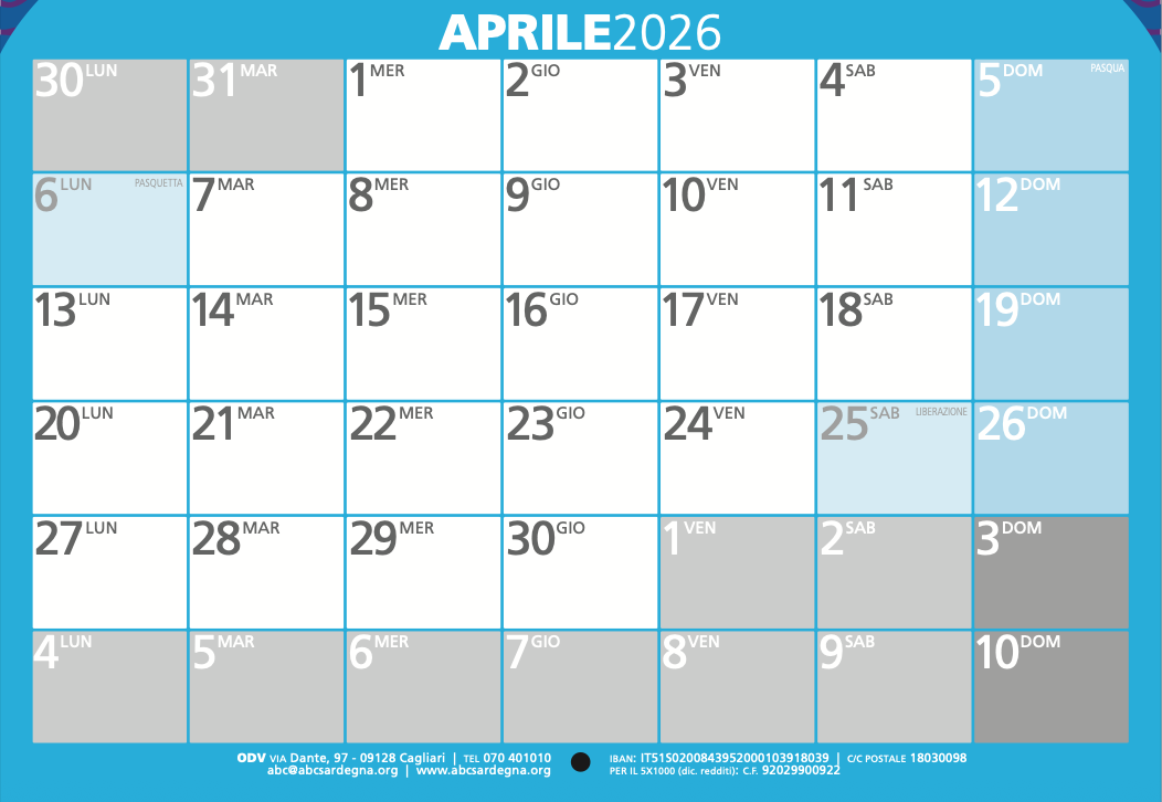 Nulla ci è dovuto. Ma se, liberamente, pensate ad una donazione potete farla versando il vostro contributo sul c/c postale n.18030098 intestato all’ABC Sardegna e, nel momento della denuncia dei redditi, con la firma del 5×1000 indicando il nostro codice fiscale 92029900922. Oppure tramite bonifico: IBAN UniCredit Banca IT51S0200843952000103918039 intestato a Associazione Bambini Cerebrolesi Sardegna.